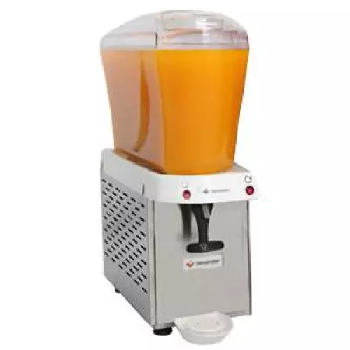 Descrição do Produto Refresqueira Inox Venancio – 1 ou 2 cubas – Características do Produto ■ Equipamentos de acordo com a portaria 371/09 do inmetro, com selo de conformidade expedido pelo mesmo; ■ Reservatórios com altíssima resistência a quebra e de fácil higienização; ■ Gabinete em aço inoxidável; ■ Sistema de agitação com pá, indicado para bebidas de maior ou menor densidade; ■ Disponível nas voltagens de 127V ou 220V; ■ Teclas independentes para comando da refrigeração e dos agitadores; ■ Compressor hermético de refrigeração com alto rendimento, baixo consumo e super silencioso; ■ Capacidade de armazenamento de até 16 litros por reservatório (modelo rv116) e 32 litros, sendo 16 litros por cada reservatório (modelo rv216); ■ Gás refrigerante ecológico, age sem agredir a natureza; ■ Capa do evaporador, que fica em contato direto com os líquidos, é confeccionada em aço inoxidável 304 estampado; ■ Marcação de nível máximo e mínimo de líquido no próprio reservatório; ■ Componentes plásticos atóxicos; ■ Bico de saída de líquidos em silicone; ■ Acionador das torneiras em ABS de fácil manuseio e higienização, que funciona através de uma mola em aço inoxidável; ■ Botões de acionamento no painel com indicadores de ligado/desligado; ■ Deve-se colocar os líquidos já refrigerados, pois estes produtos servem para manter e não para refrigerar.